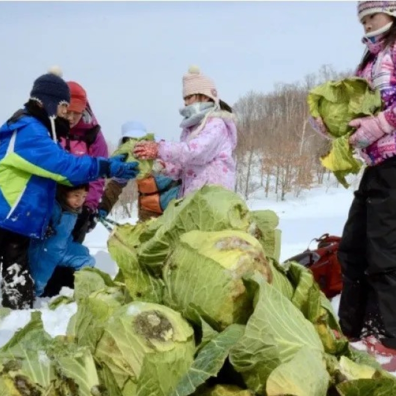 在這裡可以體驗自己剷雪,找到高麗菜把它挖出來再變成好吃的食物