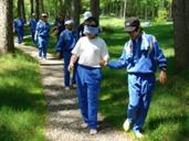 目隠しをして裸足になって様々に工夫された道を歩くことにより、視覚以外の感じる力を再認識します。