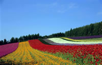 途中、ハートヒルパーク展望台でトイレ休憩が可能。(大型バスの通行可)八幡丘の富良野らしい丘陵地帯を車窓からお楽しみいただけます。 |