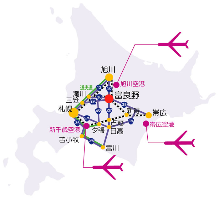 > 富良野までのアクセス(ルートマップ)